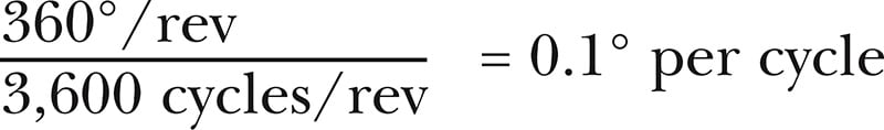 那么,心肺复苏术可以指圆盘上的线数和窗口数或一转的电循环数。在任何一种情况下,原生 CPR 都将是相同的数字,因为每对线/窗口对正是产生每个电循环的原因。CPR 还为我们提供了可以测量的最小距离。将 360 机械度的总距离除以每转的循环数,答案将是每循环的机械度;例如,编码器分辨率为 3,600 CPR: